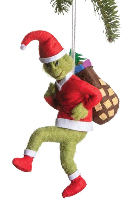 Grinch ornament, \$25. Lounge With Us, 520 Folly Rd., loungewithus.com