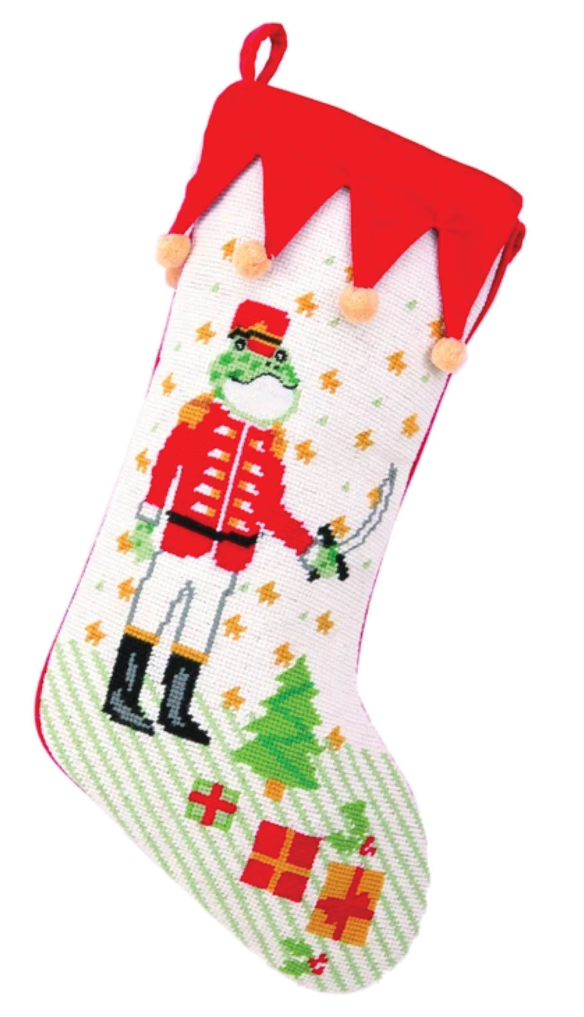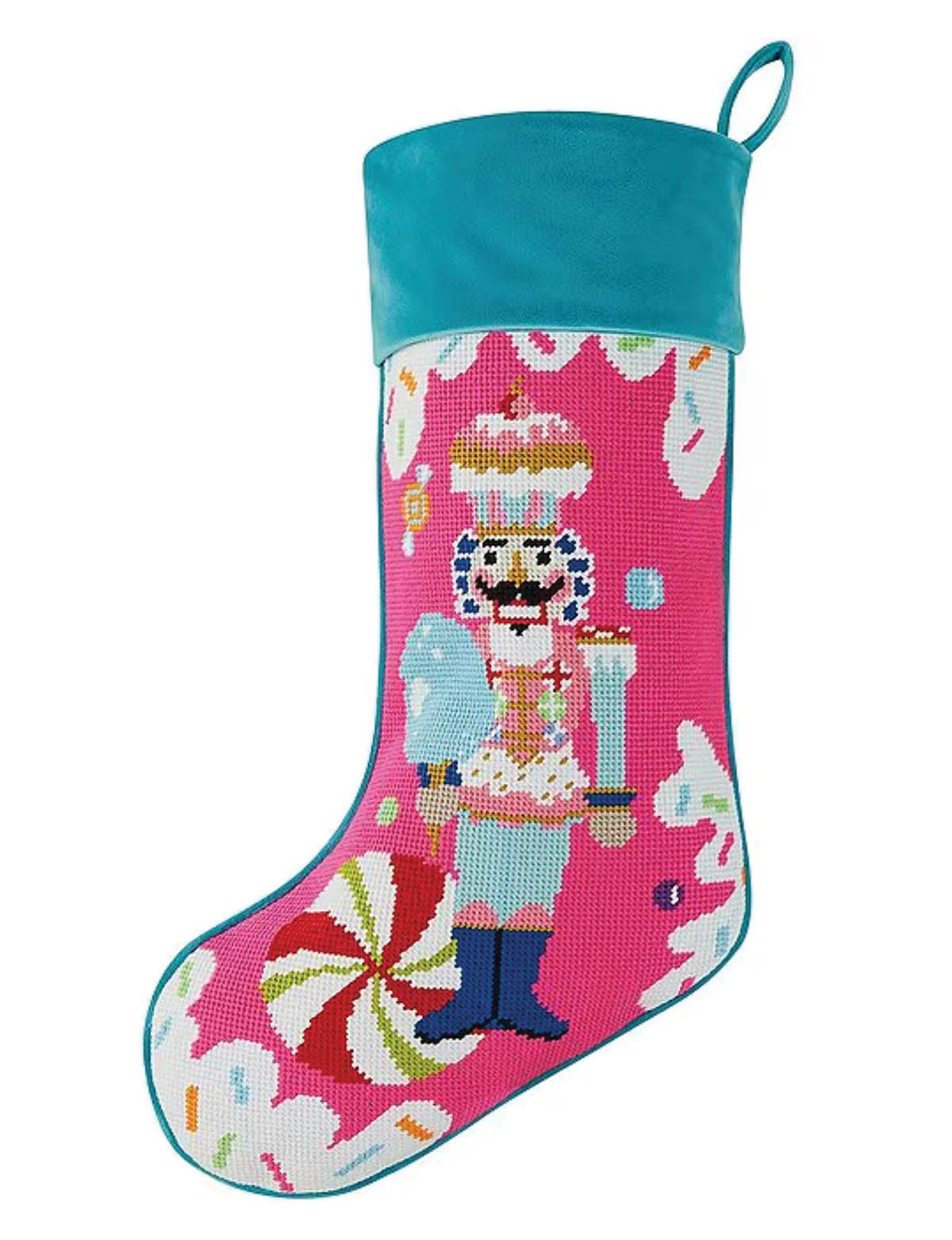 “Colonel Cupcake” needlepoint stocking, \$67.