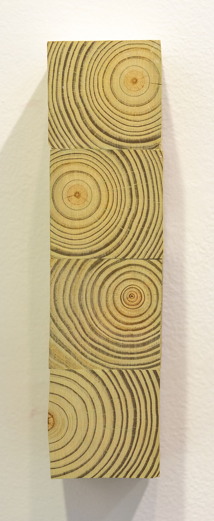 The simplistic but engaging wall hangings take on familiar shapes, some resembling a snaking labyrinth or a piercing eye, but Varnell encourages viewers to assign their own meanings. “One theme in the background is the correlation between the natural elements and man-made materials such as wood and nails,” he says. “What did these things used to be? Each of these works are made with pieces intended for completely different purposes, and now it’s art.”