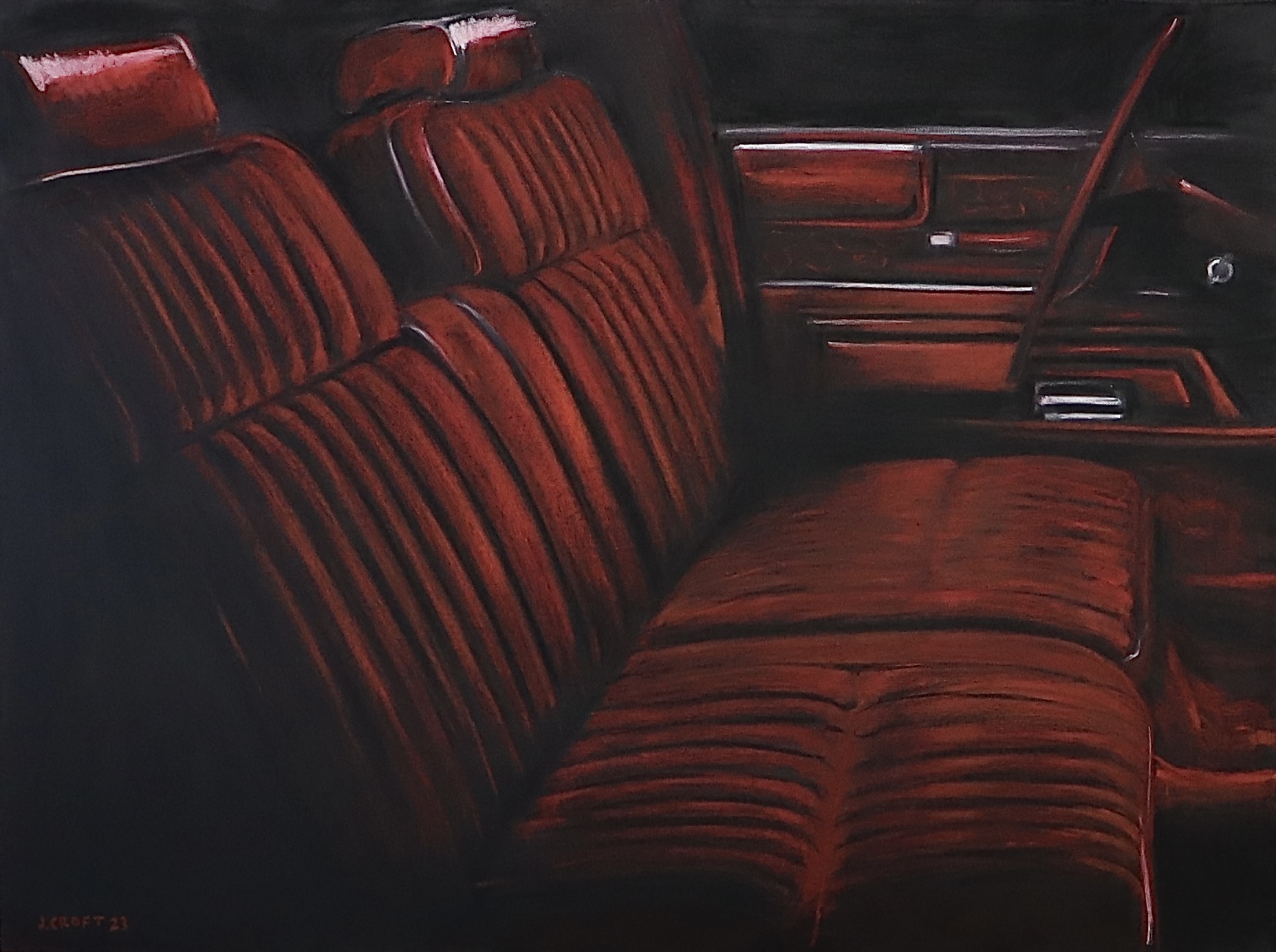 These days, Croft is making figurative oil paintings that capture ostensibly routine moments—a car interior, a pile of cigarette packs, the back of a trench coat. In his work, he aims to show grandeur in the ordinary. “Everything around us is full of meaning, but sometimes it’s hard to see it,” he says. “This is my way of addressing how prolific our existence actually is, and the fact that we just overlook it most of the time.” —Margaret Loftus